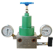 本阀为二位四通自动液压换向阀,上平面设有两块压力表和调压手轮。换向压力由手轮调节,顺时针压力升高,反之压力降低。本阀门进油口P与泵出油口连接,回油口R接贮油桶,供油口Ⅰ、Ⅱ分别与两条供油管路连接。工作时当Ⅰ路油压达设定压力,换向阀自动切换到Ⅱ路,这样润滑泵就能循环往复地向两条管路供送润滑脂。