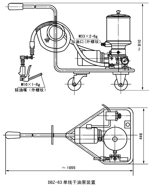 3、向贮油器内补脂必须使用SJB-D60型手动加油泵或DJB-200型电动加油泵,从贮油器的加油口加入,当贮油器内无润滑脂时严禁启动干油泵。