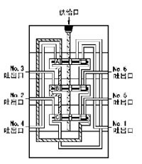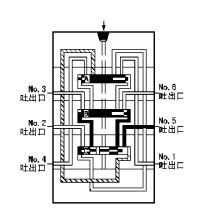 | 7、流入的润滑剂推动活塞A 向右运动、右腔的润滑剂压向NO.6吐出口,经外部配管送向润滑点。当活塞A移动到至右极限时返回到初始1状态,继续重复上述动作。 |